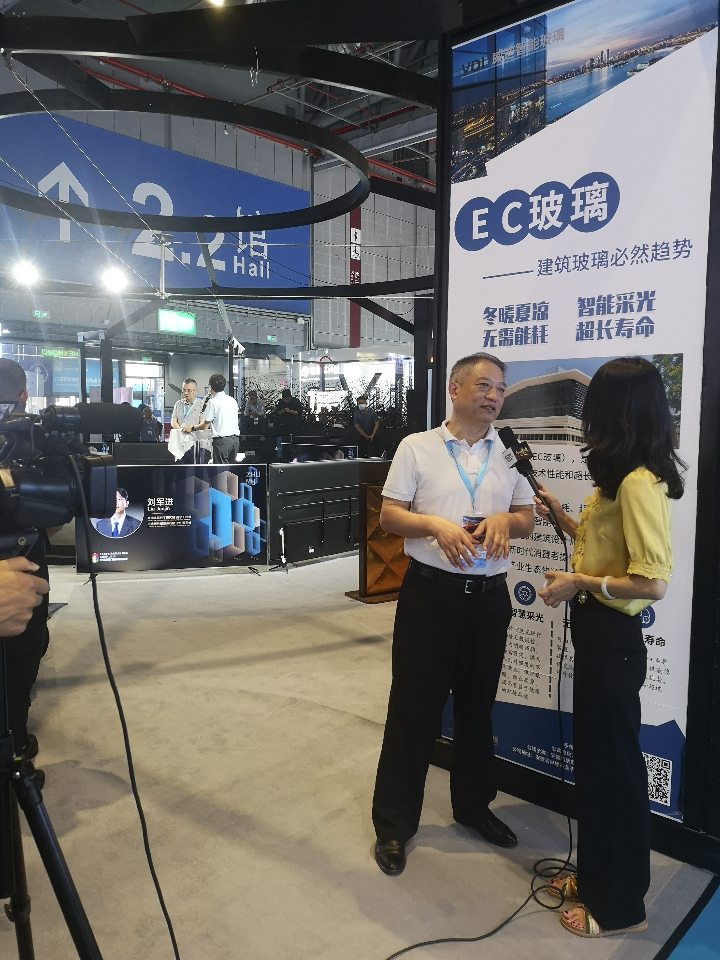 威迪智能玻璃公司的核心成員裴世鈾博士、劉毅博士、劉鈞博士三位科學(xué)家親臨現(xiàn)場,帶領(lǐng)20余位推廣人員,接待觀眾近5000人,先后接受CCTV、幕墻創(chuàng)享周直播等媒體的多次專訪。
